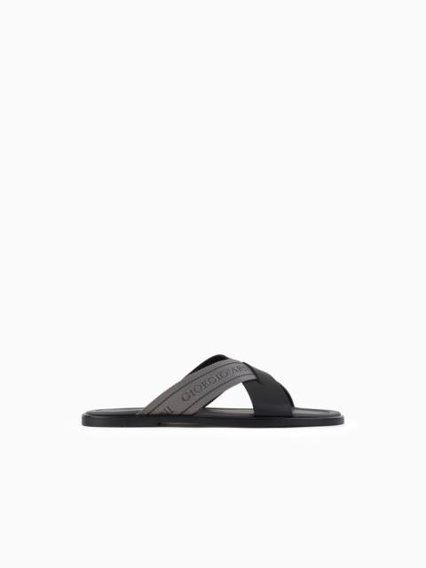 LEATHER CROSS SANDALS WITH TWO-TONED TAPE