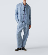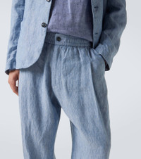 Known for its streamlined modernity, Giorgio Armani presents an elegant take on classic silhouettes and immaculate suiting. These pants are Italian-crafted from pure, breathable linen into a wide-leg silhouette with an elasticated waist. Product Details - Material: 100% linen - Care instructions: machine wash at 30 degrees - Made in Italy - Designer color name: Troposphere - Item color: blue - Pocket lining: 100% cotton - Contains non-textile parts of animal origin - Closure: zipper fly, button fastening - Elasticated drawstring waist - Pockets: side slit pockets, back pockets - Item number: P01017951 Size & Fit - True to size - Elasticated waist - Non-stretchy fabric - Straight leg - Height of model is 189cm-74.5" and wears a size 50