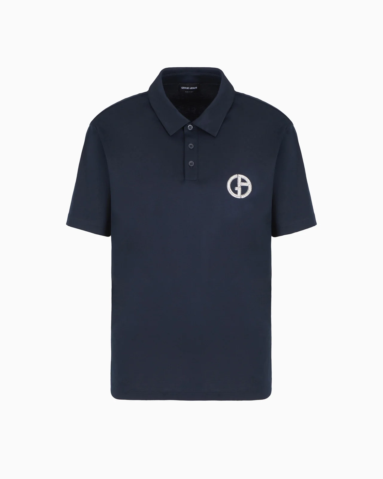 This smooth and comfortable, pure cotton interlock polo shirt is defined by the minimalism characteristic of part of the collection. The style has short sleeves, a classic three-button collar and is customised with a topstitching-effect embroidered GA logo on the chest. A versatile garment that adapts to different looks, completing them with the enduring Giorgio Armani style. Product Code: GM000241TE106291UB100 Details Composition 100% Cotton Polo-shirt collar Three-button closure Short sleeves Embroidered GA logo with topstitching effect Made in Italy Fitting The model is 188 cm tall and is wearing size 48 / M