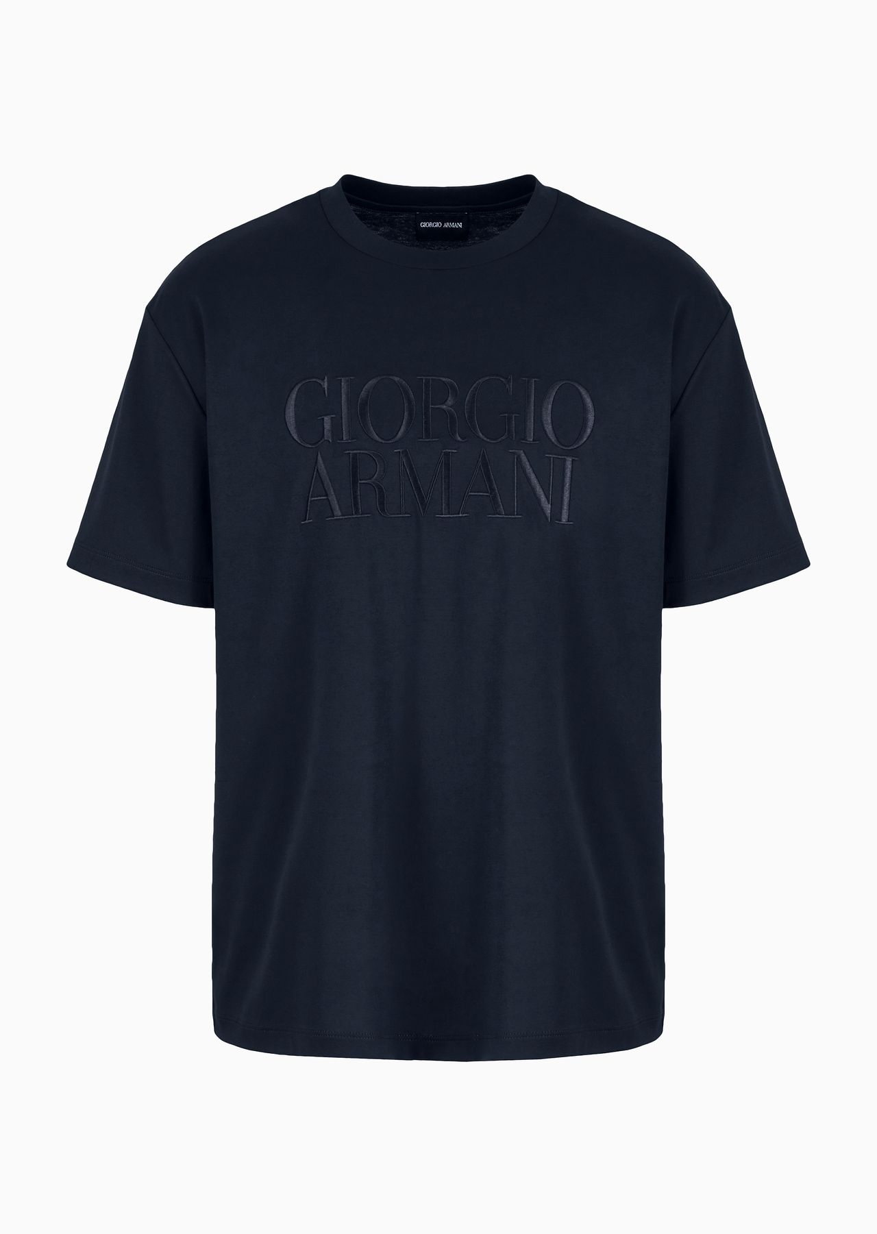 Crew-neck T-shirt made from pure cotton interlock with an extremely soft and comfortable feel. The streetwear-inspired style is embellished with an oversized matching Giorgio Armani embroidered logo on the chest. A garment that perfectly complements off-duty looks with effortless style. Product Code: 3DSM72SJTKZ1UBWF Details Composition 100% Cotton Crew neck Short sleeves Oversized Giorgio Armani logo embroidered in monochromatic flat stitch on the chest Made in Italy Fitting The model is 188 cm tall and is wearing size 48/M
