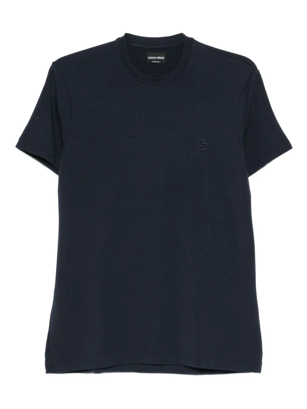 logo-embroidered short-sleeve T-shirt Highlights - Dark-blue - Short sleeves - Crew neck - Logo-detail - Straight hem Made in Italy Composition Modal 73%, Polyamide 18%, Elastane 9% Washing instructions Machine Wash