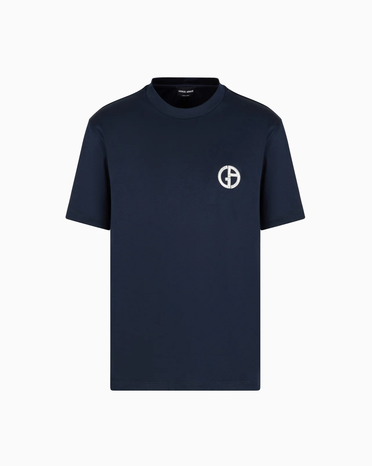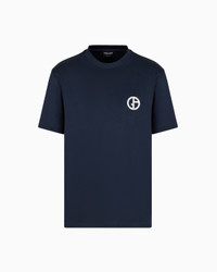 Crew-neck T-shirt made from cosy, comfortable pure cotton interlock with a relaxed feel and minimalist design. The style has short sleeves and a matching embroidered GA logo. A versatile garment that adapts to different looks, completing them with the enduring Giorgio Armani style. Product Code: GM000240TE106291UB100 Details Composition 100% Cotton Regular fit Crew neck Short sleeves Matching topstitching-effect embroidered GA logo on the chest Made in Italy Fitting The model is 188 cm tall and is wearing size 48 / M