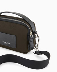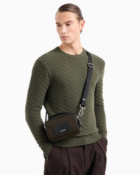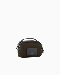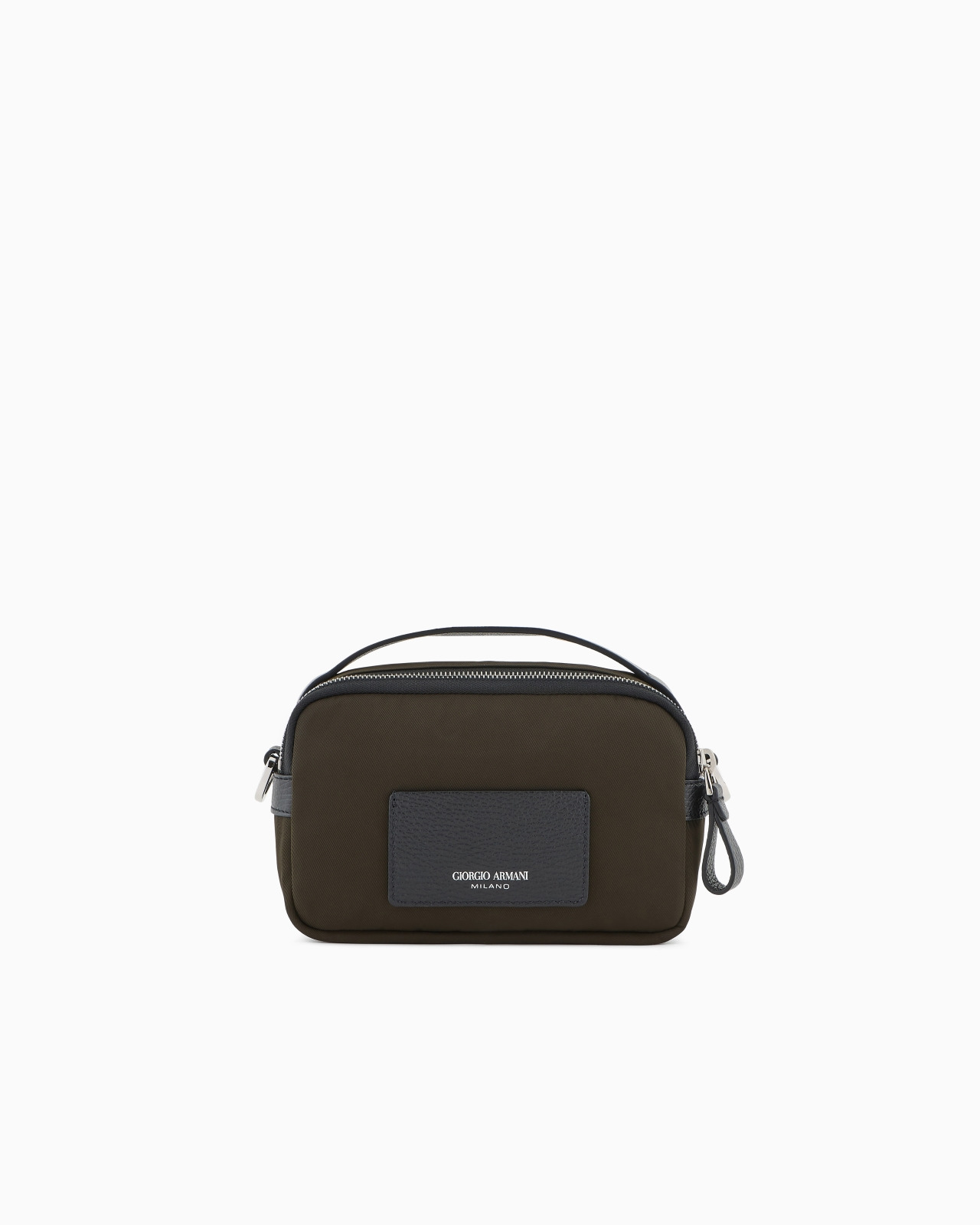 Mini-volume crossbody bag, which combines performance and design, perfect for taking to work or for leisure time. The style is made of recycled, certified nylon and customised with pebbled-leather inserts. Featuring a zip fastening and external patch pocket, it has a practical adjustable and detachable webbing shoulder strap that allows it to be worn two ways. The main fabric is made of 100% recycled polyester Zip closure Pebbled-leather handle Pebbled leather patch pocket with embossed Giorgio Armani logo Shiny palladium hardware Adjustable, detachable webbing shoulder strap Measurements: 12 x 19 x 7 cm Made in Italy Product Code: Y2R693Y752E80349