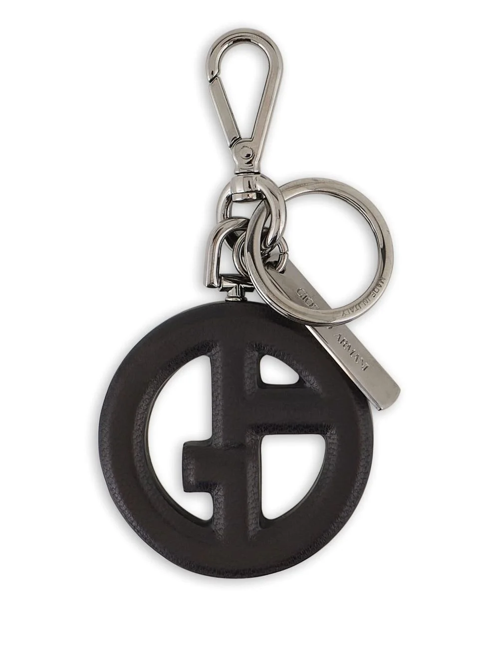 logo-plaque keyring Highlights - Black - Hook-clip fastening - Keyring attachment - Engraved logo Made in Italy Composition Lamb Skin 100%, Steel 100% SIZE & FIT Measurement DEPTH 0.39 in(1 cm) LENGTH 1.96 in(5 cm) WIDTH 1.96 in(5 cm)