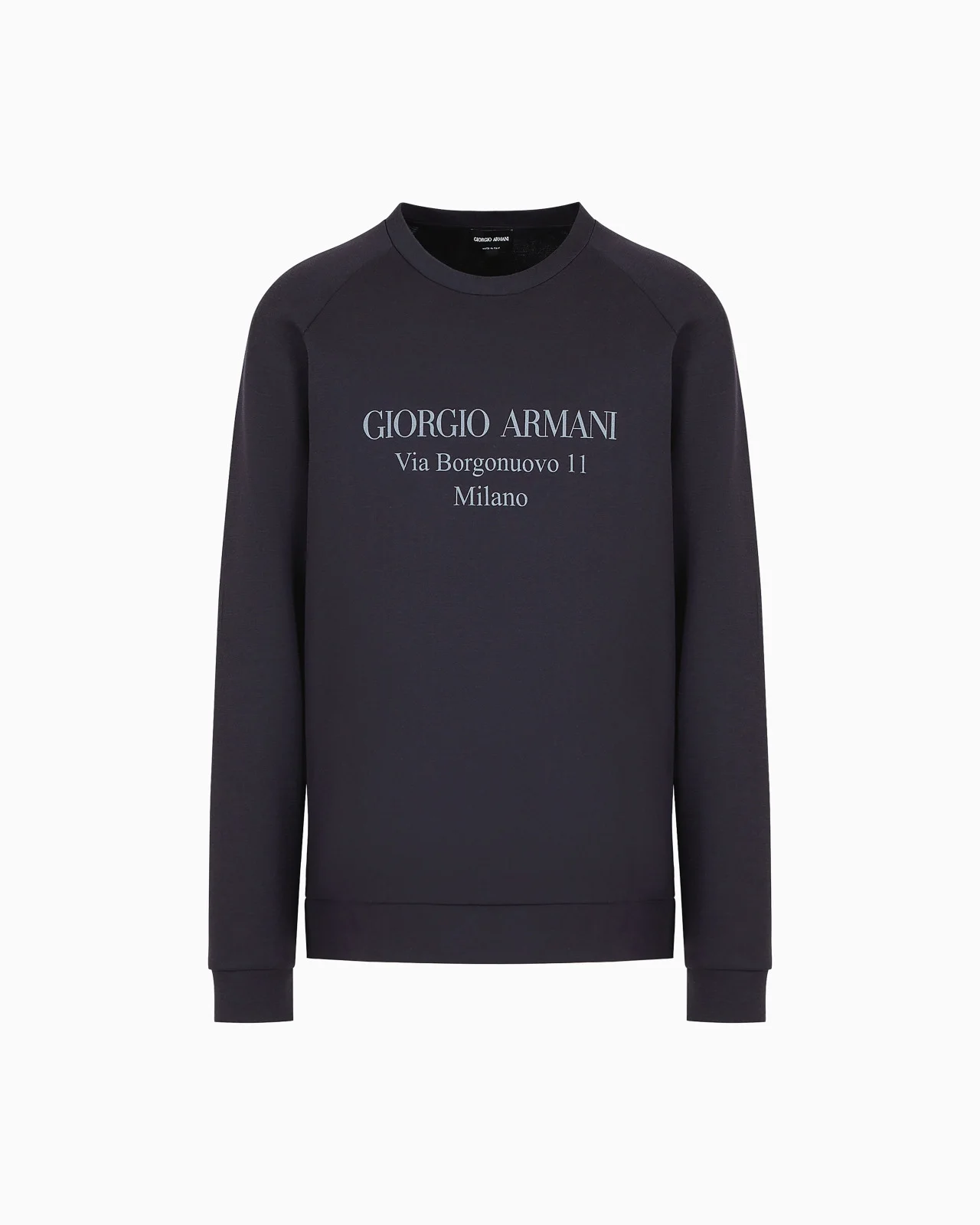 Sweatshirt in soft cotton featuring a contrasting print of the brand’s historic address: Via Borgonuovo 11 Milano. This comfortable, crew-neck style is perfect in laid-back, casual looks. Product Code: 3GSM81SJSXZ1UBVN Details Composition 80% Cotton 20% Polyamide Crew neck Long raglan sleeves Contrasting water-based print on the front Double-fold hem at the collar, cuffs and waistband