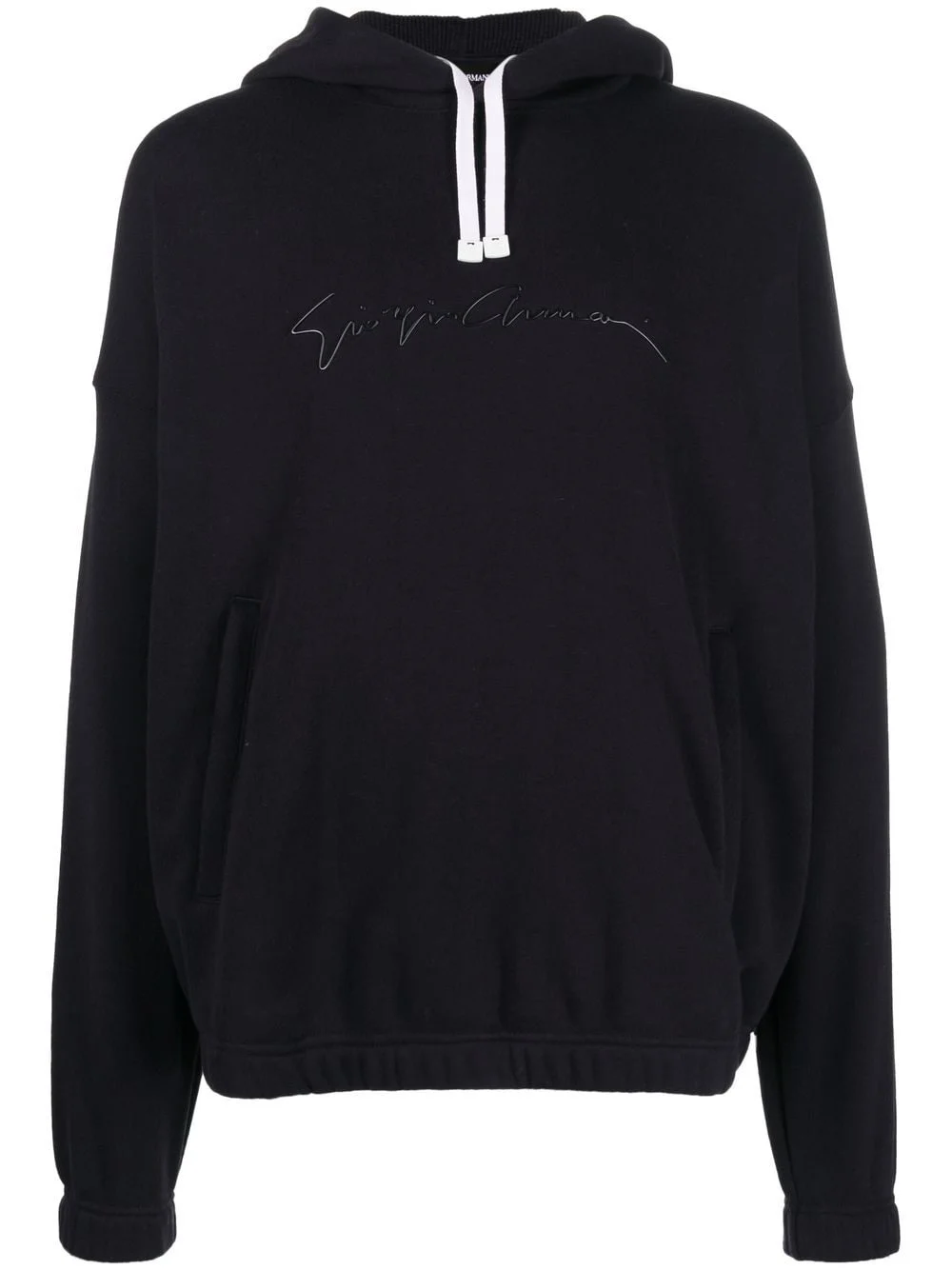 logo-print cotton hoodie black cotton jersey knit logo print at the chest drawstring hood long sleeves elasticated cuffs elasticated hem Made in Italy Composition Outer: Cotton 100% Lining: Cotton 100% SIZE & FIT Model measurements Height 6 ft 2 in(1.89 m) Bust/Chest 35.82 in(91 cm) Hips 37.99 in(96.5 cm) Waist 32.28 in(82 cm) FittingInformation This piece fits true to size. We recommend you get your regular size Cut for a loose fit Made with a mid-weight fabric