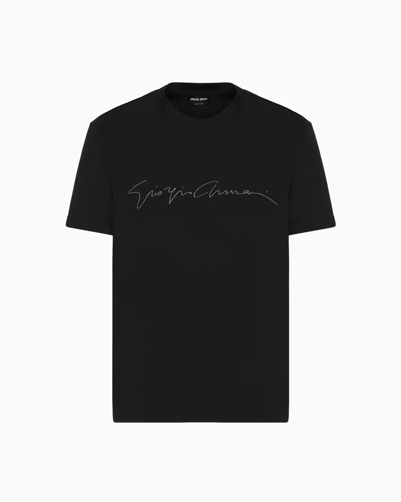 The T-shirt acquires new character: more sophisticated and special. Made from mercerised viscose jersey, this item features an exclusive Giorgio Armani print. Slim fit Crew neck Short sleeves Contrasting signature logo water-transfer print on the front Made in Italy Product Code: 6GST56SJP4ZUC99