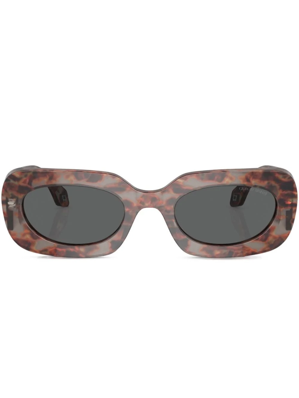 logo-print sunglasses Highlights - Ash grey/cedar brown - Acetate - Tortoiseshell effect - Rectangle frame - Logo print at the arm - Straight arms - Curved tips - These glasses come with a protective case. Made in Italy Composition Acetate 100% SIZE & FIT Measurement Arm Length 5.51 in(14 cm) Bridge Width 0.9 in(2.3 cm) Lens Diameter 2.04 in(5.2 cm)