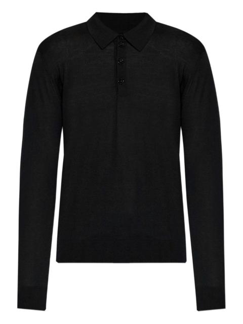 long-sleeve polo shirt Highlights - Black - Polo neck - Long sleeves - Button fastening - Ribbed hem - Knitted Made in Italy Composition Wool 100% Washing instructions Read Manufacturer Guidelines