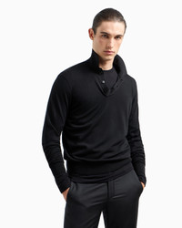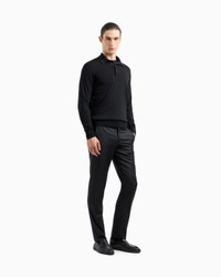 Long-sleeved polo shirt in virgin wool