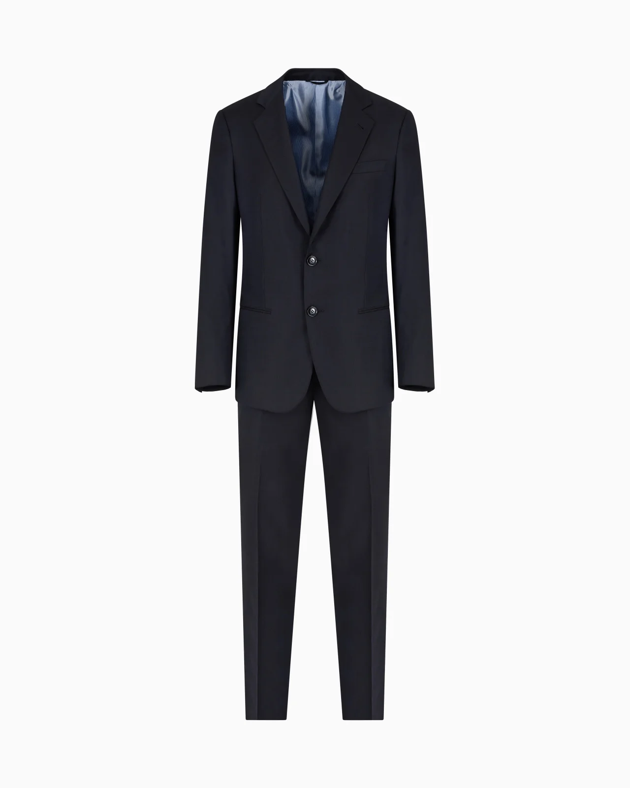 This virgin wool suit with a micro cannete texture is defined by an extremely luxurious, highly tailored canvassed construction, as seen in the contoured inner facing and meticulously crafted details. A regular-fit style consisting of clean-lined trousers with a sanforised waistband, along with a two-button, single-breasted jacket featuring notched lapels. Its distinctive allure makes it a must-have of the elegant male wardrobe. Manhattan Line suit Tailored, canvassed construction with contoured inner facing Two-buttoned, single-breasted, canvassed jacket Notched lapels Welt pockets Breast welt pocket Side slits Openable cuffs Lined Jacket length: 73.5 cm Trousers with shrunken belt Trouser hem width: 19 cm Made in Italy Product Code: GM000465TE14455U8136