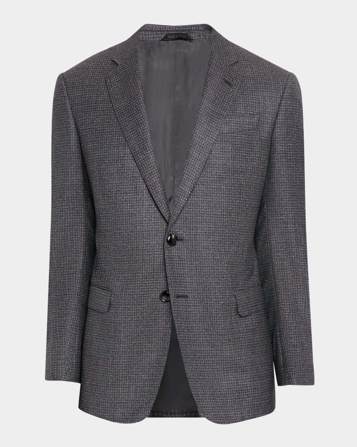 - Giorgio Armani sport jacket showcasing a soft yet subtle check-textured finish - Notched lapels - Chest welt pocket - Single-breasted front - Hip flap pockets - Long sleeves - Double-vented back - Virgin wool/viscose - Dry clean - Made in Italy