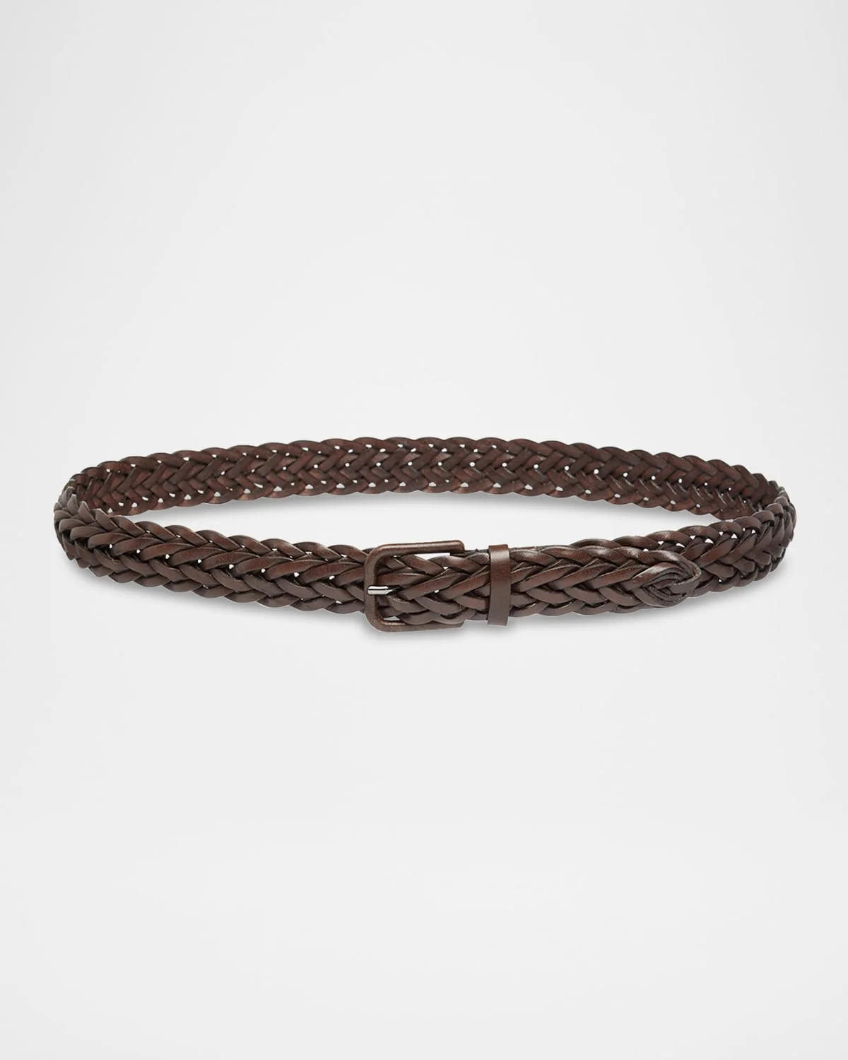 Giorgio Armani belt in intricately braided calf leather with a polished finish Approx. 1.2"W Leather-covered pin buckle Leather loop Adjustable fit Leather Made in Italy