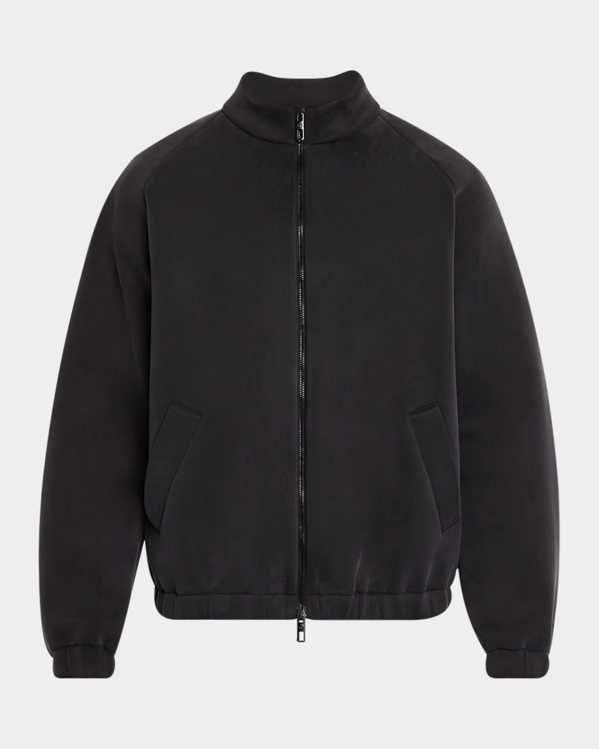 - Giorgio Armani blouson jacket in solid stretch jersey - Mock neckline - Two-way zip closure - Welt pockets - Long sleeves - Elasticized cuffs and waistband - Cupro/elastane/cotton - Dry clean - Made in Italy
