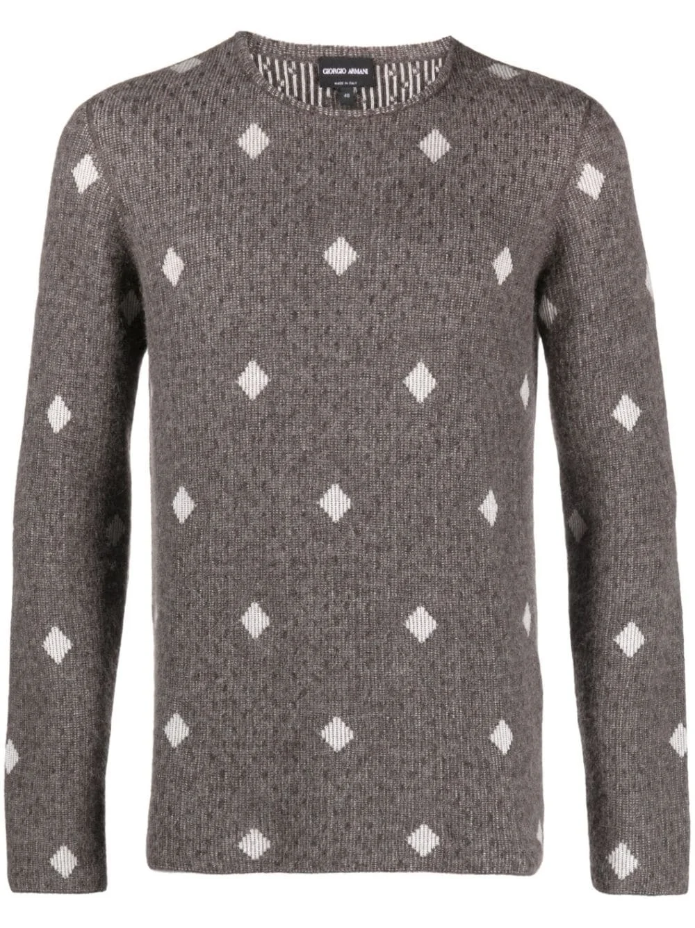 diamond-jacquard crew-neck jumper Highlights - Tobacco brown - Knitted construction - Patterned jacquard - Diamond print - Crew neck - Long sleeves - Straight hem Made in Italy Composition Cashmere 43%, Viscose 24%, Silk 21%, Alpaca 12% SIZE & FIT Model measurements Height 6 ft 2 in(1.87 m) Bust/Chest 36.41 in(92.5 cm) Hips 37 in(94 cm) Waist 29.52 in(75 cm) FittingInformation Designed for a relaxed fit, this piece allows for comfort and movement when worn Made with a midweight knit, this piece offers some stretch This piece fits true to size – take your usual size