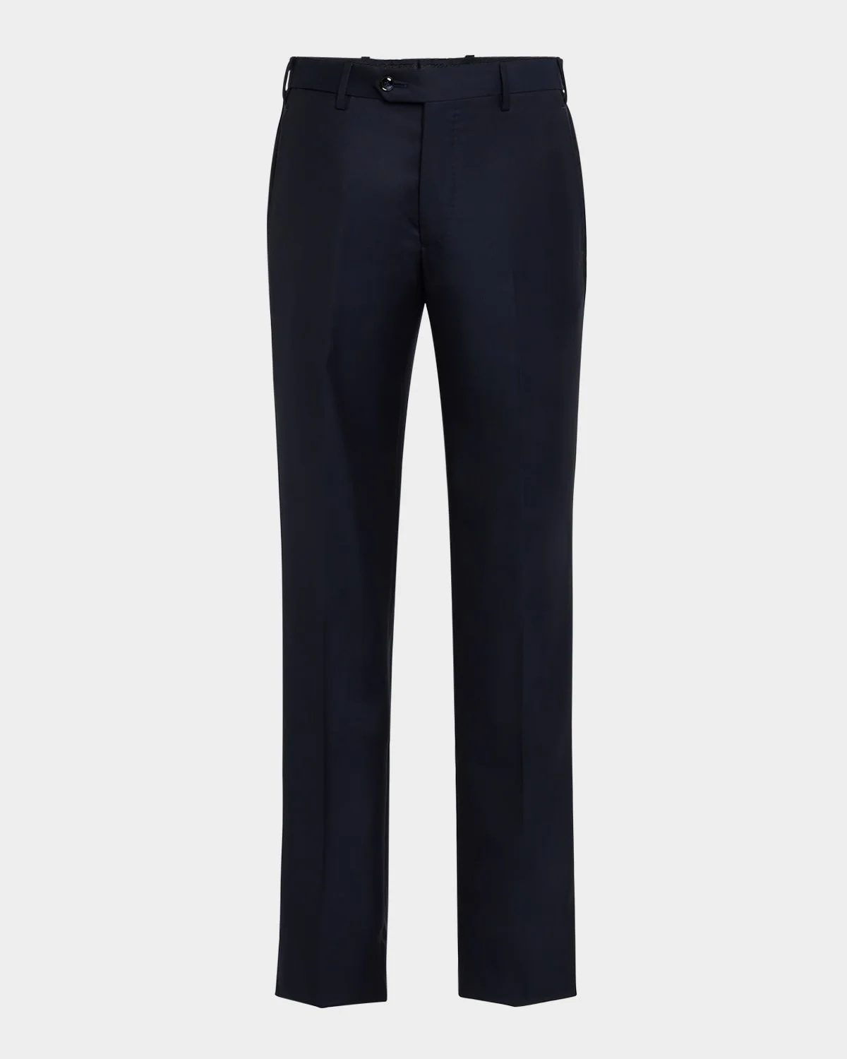 - Giorgio Armani solid twill trousers - Regular rise - Flat front - Side slip pockets - Full length - Regular fit - Button/zip closure; belt loops - Cotton/wool - Made in Italy - Model is 6'1"/185cm.