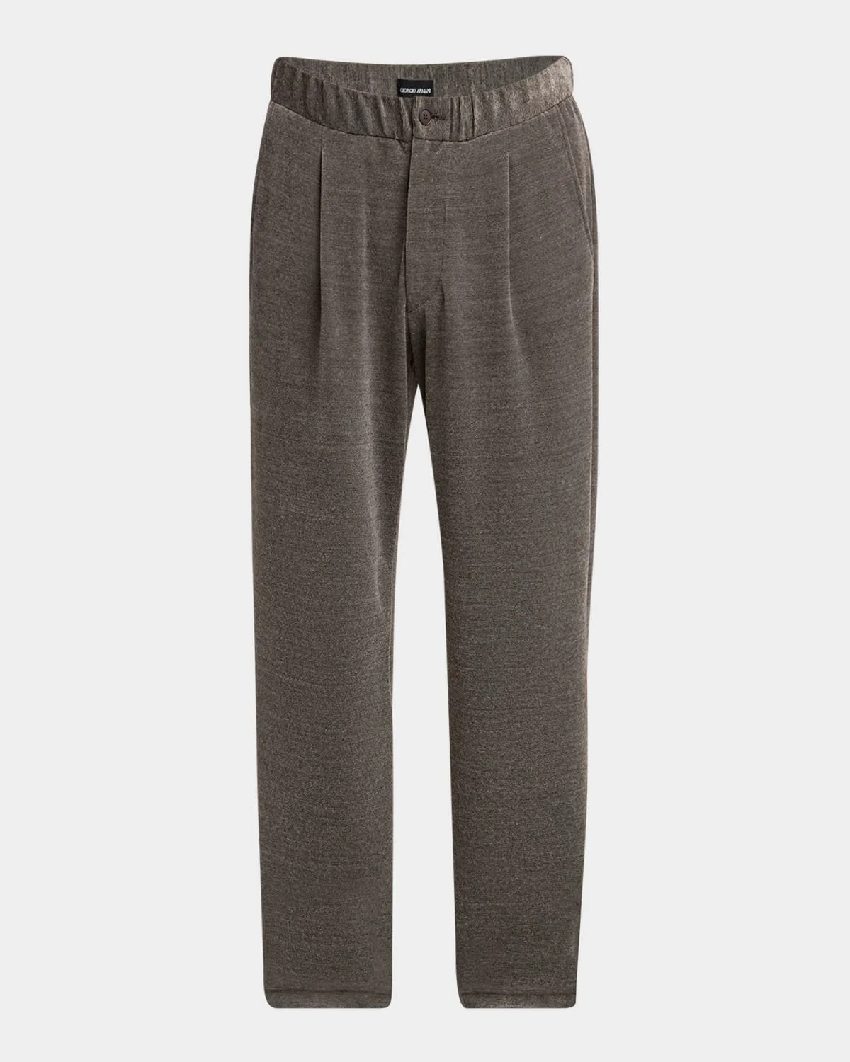 - Giorgio Armani pants in a heathered chenille cotton blend, resulting in stylish dimension - Pleated front - Regular rise - Side slip pockets - Back besom pocket - Relaxed fit through straight legs - Full length - Button-zip front - Elasticized waistband - Cotton/nylon/polyamide - Dry clean - Made in Italy