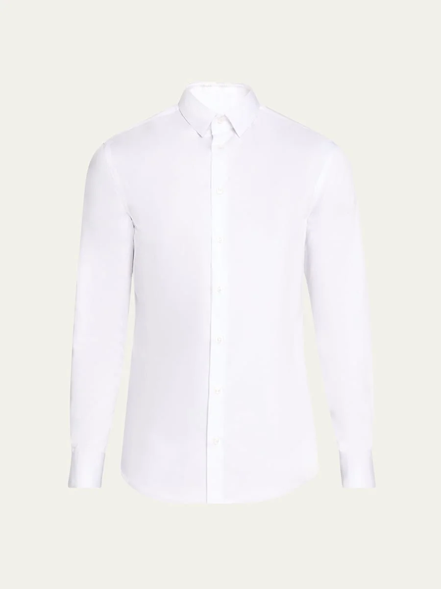 Giorgio Armani solid sport shirt Spread collar Button placket Long sleeves Mitered barrel cuffs Yoked back shoulders Darted back Cotton Dry clean Made in Italy Online Inquiries: BGS21_NC0Y6| Store Inquiries: #4714227