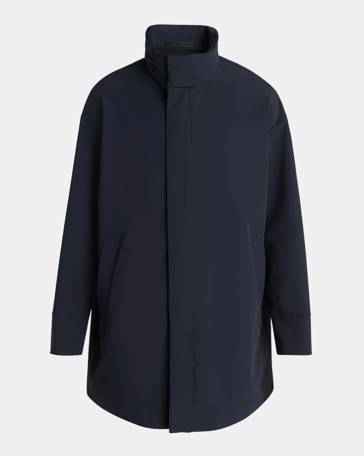 - Giorgio Armani caban coat in weather-resistant nylon - Funnel neckline - Concealed zip closure - Broad welt pockets - Long sleeves - Dry clean - Made in Italy