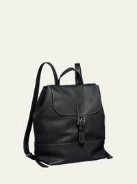Giorgio Armani backpack in pebbled leather highlighted with contrast stitching Top handle Adjustable leather shoulder straps Flap top with buckle closure Interior, two flat pockets Approx. 14.6"H x 6.3"W Made in Italy Online Inquiries: BGS21_NDMSR| Store Inquiries: #5050556