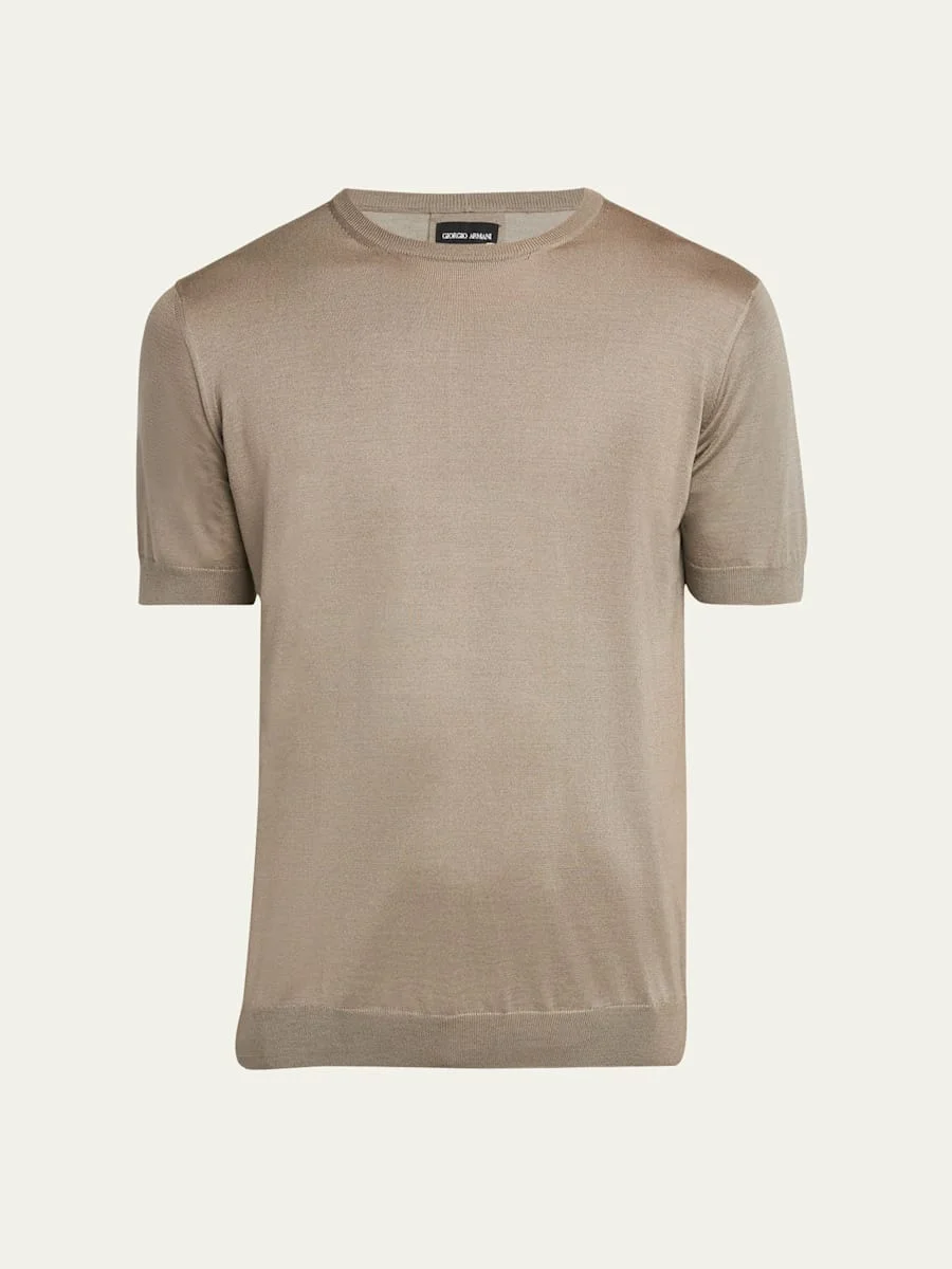 Giorgio Armani solid Tshirt crafted in a luxurious blend of silk and cotton Crew neckline Short sleeves Pullover style Dry clean Made in Italy