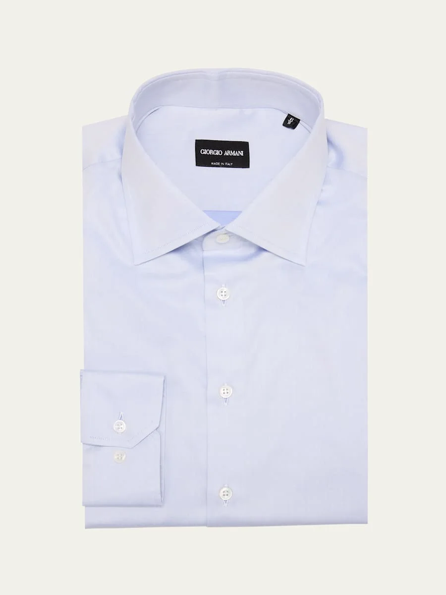Giorgio Armani solid dress shirt Point collar Button placket Long sleeves Mitered barrel cuffs Cotton Made in Italy