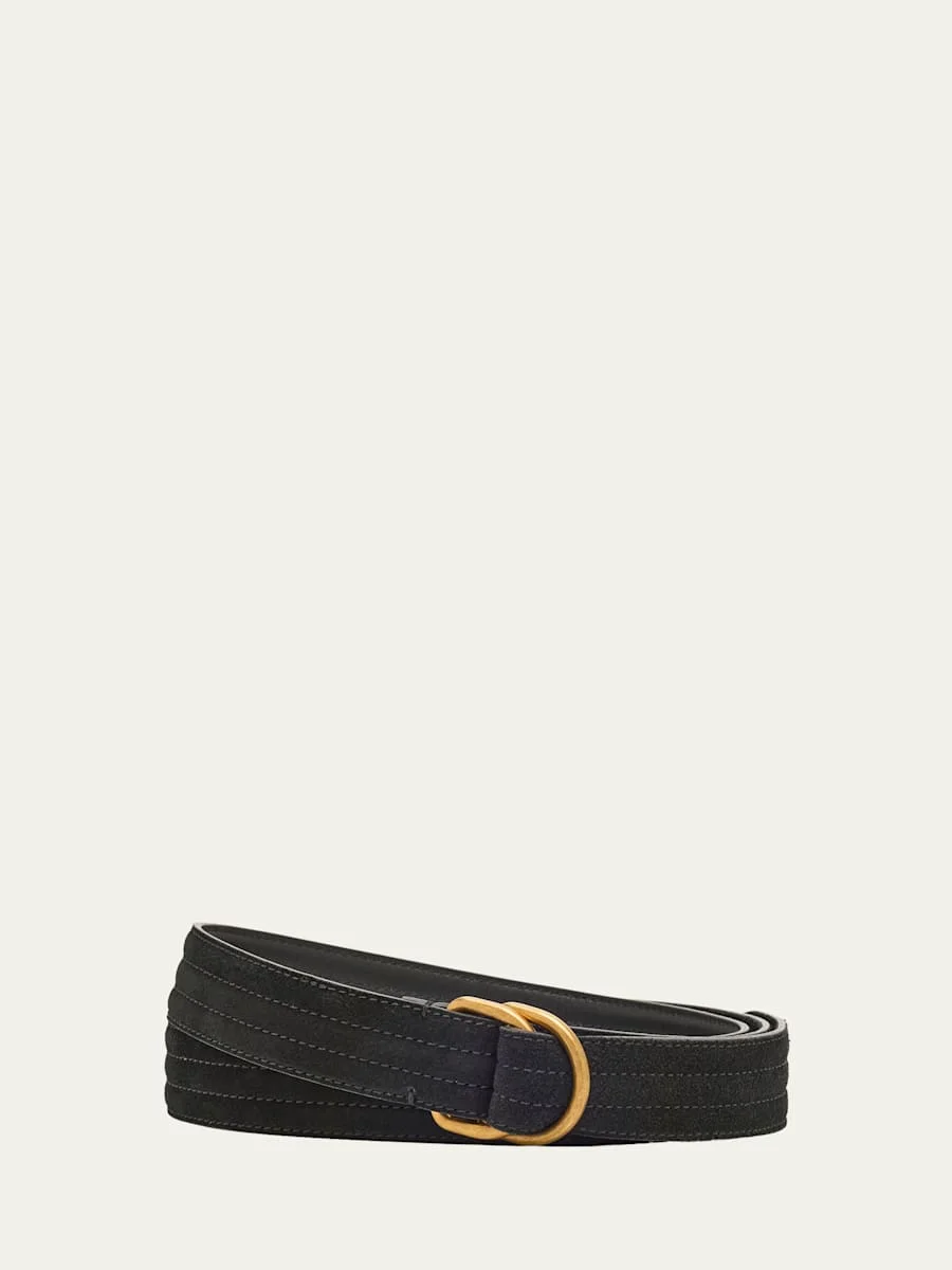 Giorgio Armani belt in split leather with tonal stitching Approx. 1.2"W Gold-tone D-ring Adjustable fit Leather Dry clean Made in Italy Online Inquiries: BGS21_NCR7P| Store Inquiries: #4934601