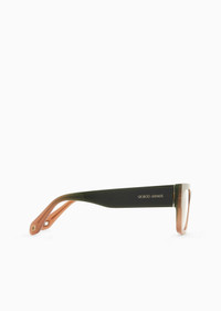 Rectangular frame in acetate. Vintage-inspired tubular acetate temples with an embossed logo complete the design. Product Code: AR7243U.L5982.L153.L Details Composition 100% Acetate Frame material: Acetate Temple material: Acetate Shape: Rectangular Lens diameter/bridge width/temple length: 51/145/19 mm Frame colour: Gradient green
