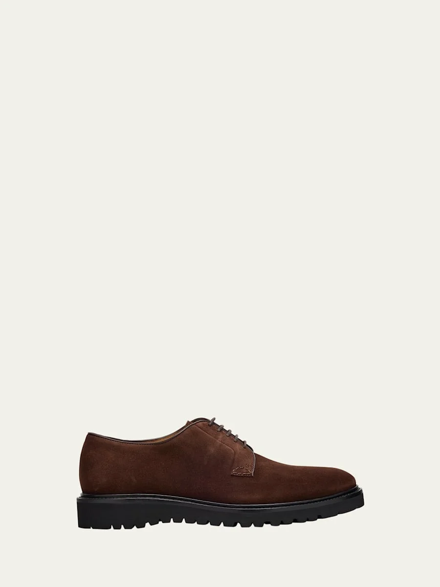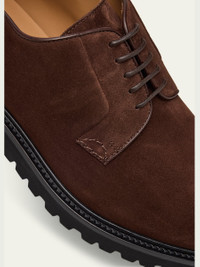 Giorgio Armani derby shoes in supple calf suede, defined by a comfortable rubber sole Flat chunky heel Round toe Lace-up vamp Rubber outsole Made in Italy Online Inquiries: BGS21_NDMWB| Store Inquiries: #5051286
