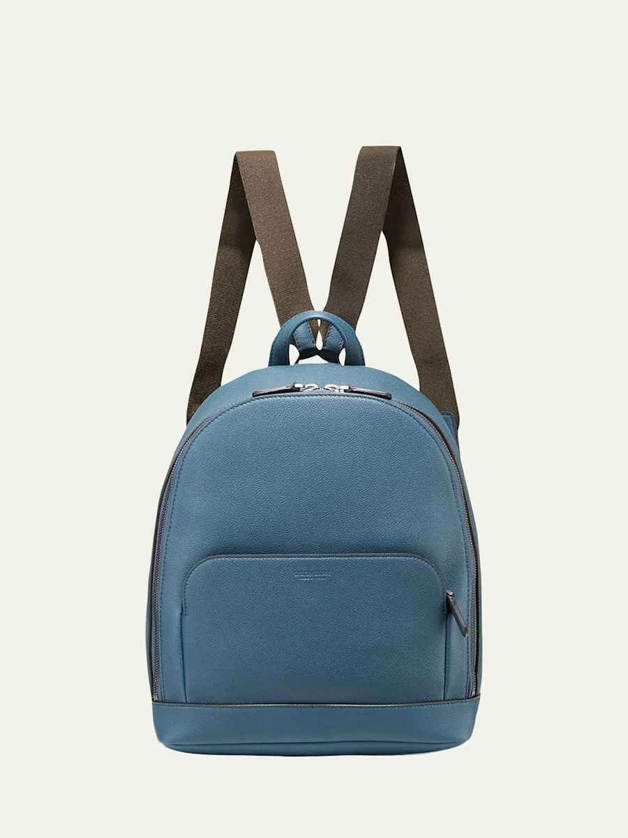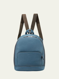 Giorgio Armani backpack in tumbled calf leather. Flat top handle. Padded, adjustable web shoulder straps. Two-way zip-around top closure. Front zip pocket. Interior, textile lining; two slip pockets. Made in Italy. Online Inquiries: BGS21_N5RE9| Store Inquiries: #2750917
