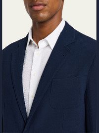 Giorgio Armani "Upton" sport coat in solid seersucker Notched lapels Twobutton closure Chest and hip patch pockets Fourbutton sleeve finish Virgin wool/elastane Dry clean Made in Italy