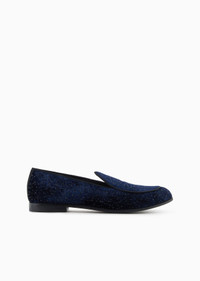 Elegant loafers made from the collection’s velvet and embellished with monochromatic pave crystals. A sophisticated item expressed with a modern touch, perfect for wearing with evening looks and on special occasions. This footwear is part of the Giorgio’s collection: the Giorgio Armani selection inspired by the evening world. Clean lines, attention to detail, an elegant night-time colour palette and the choice of luxurious materials define this modern and essential selection, providing the look for an effortless evening wardrobe. Product Code: X2A403XR2711U383 Details Composition 70% Viscose 30% Polyester Velvet loafers All-over rhinestones applied on the uppers Leather insoles Leather soles Made in Italy