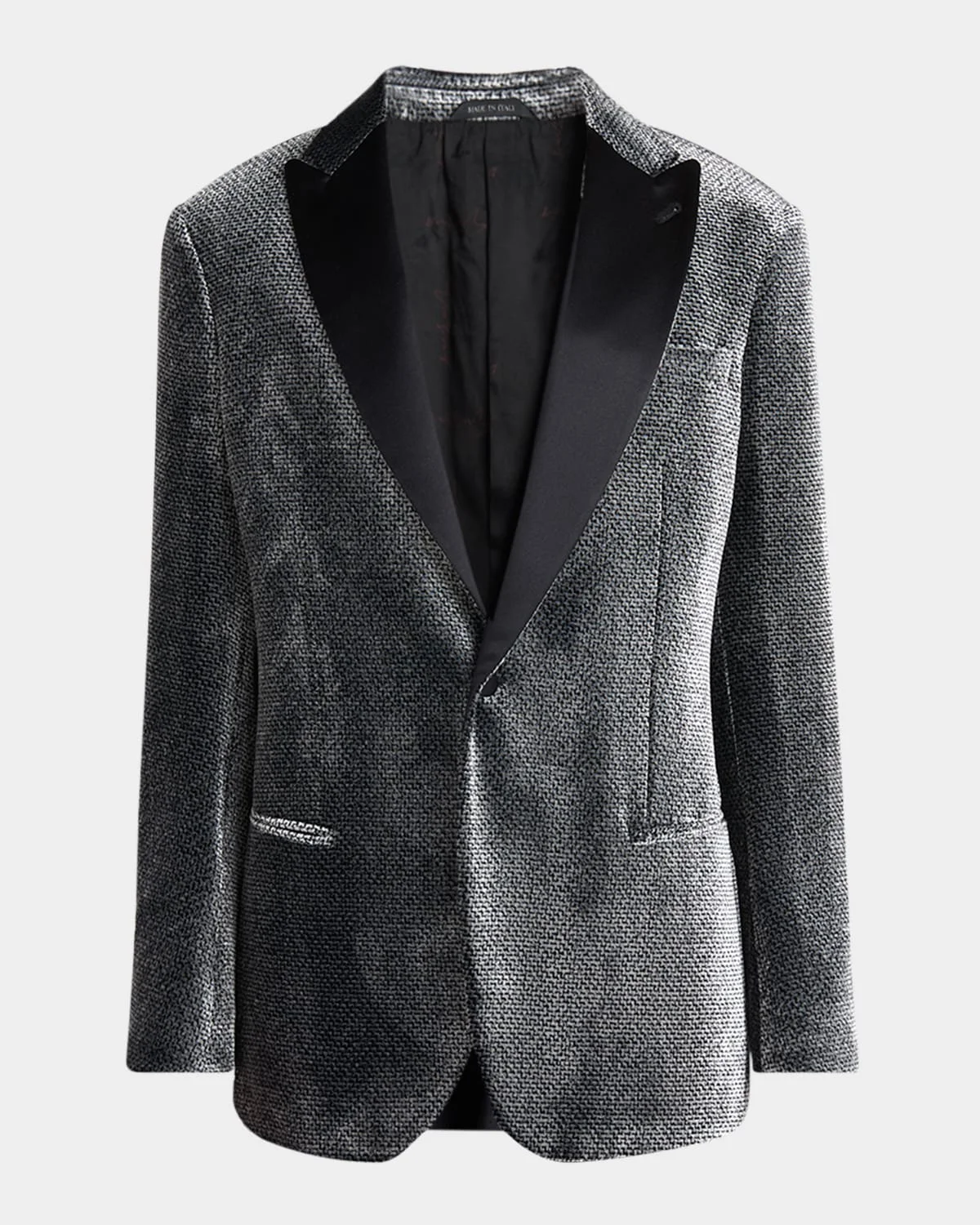 Men's Velvet-Effect Peak Lapel Dinner Jacket