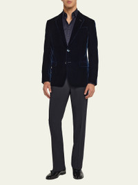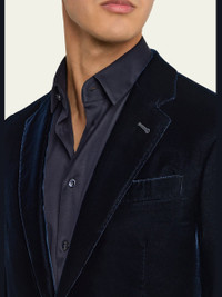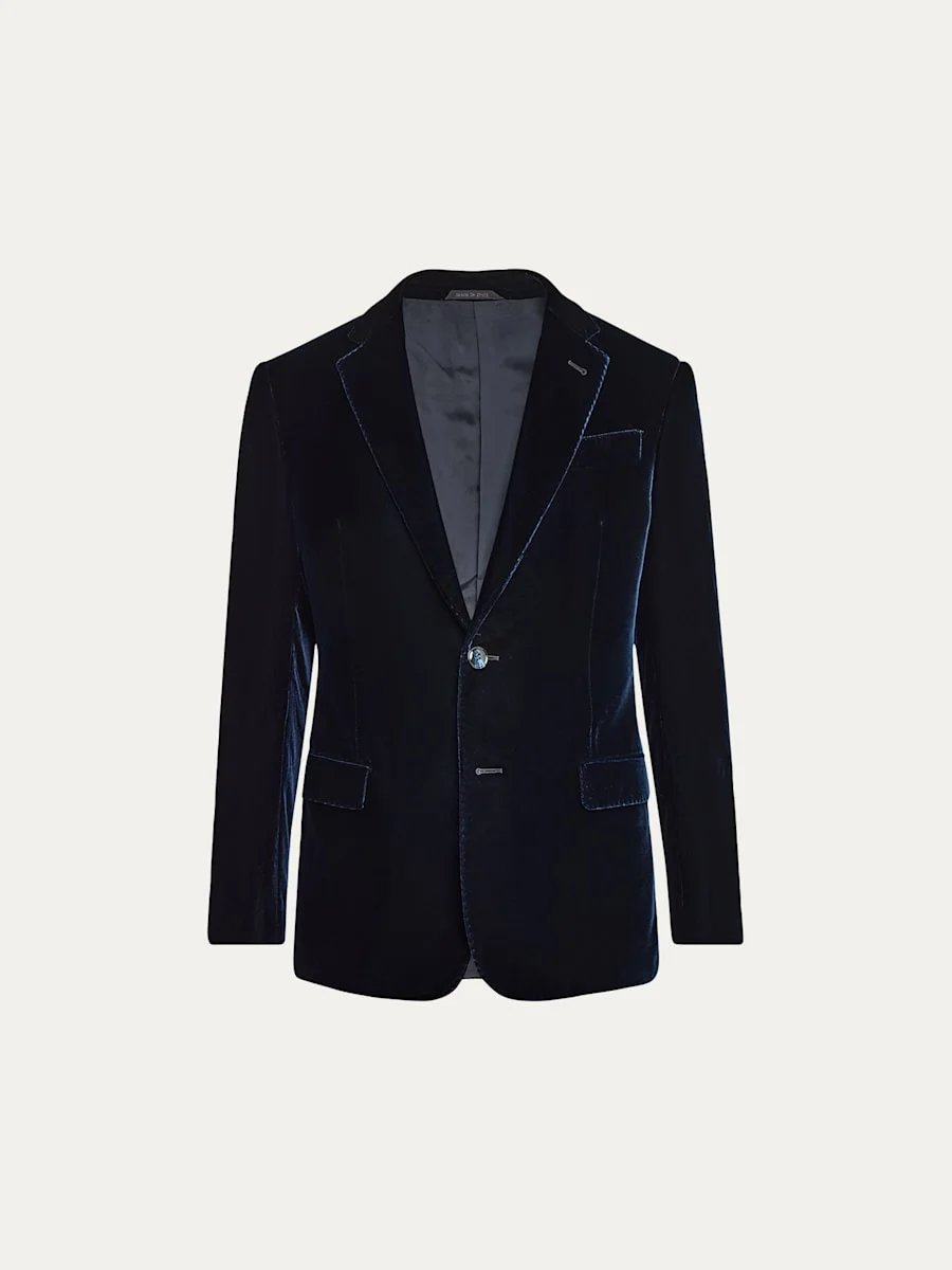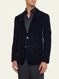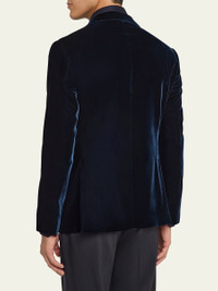 Giorgio Armani formal jacket showcasing a lustrous velvet finish Notch lapels Singlebutton front Chest welt pocket Hip flap pockets Doublevented back Viscose/cupro Dry clean Made in Italy