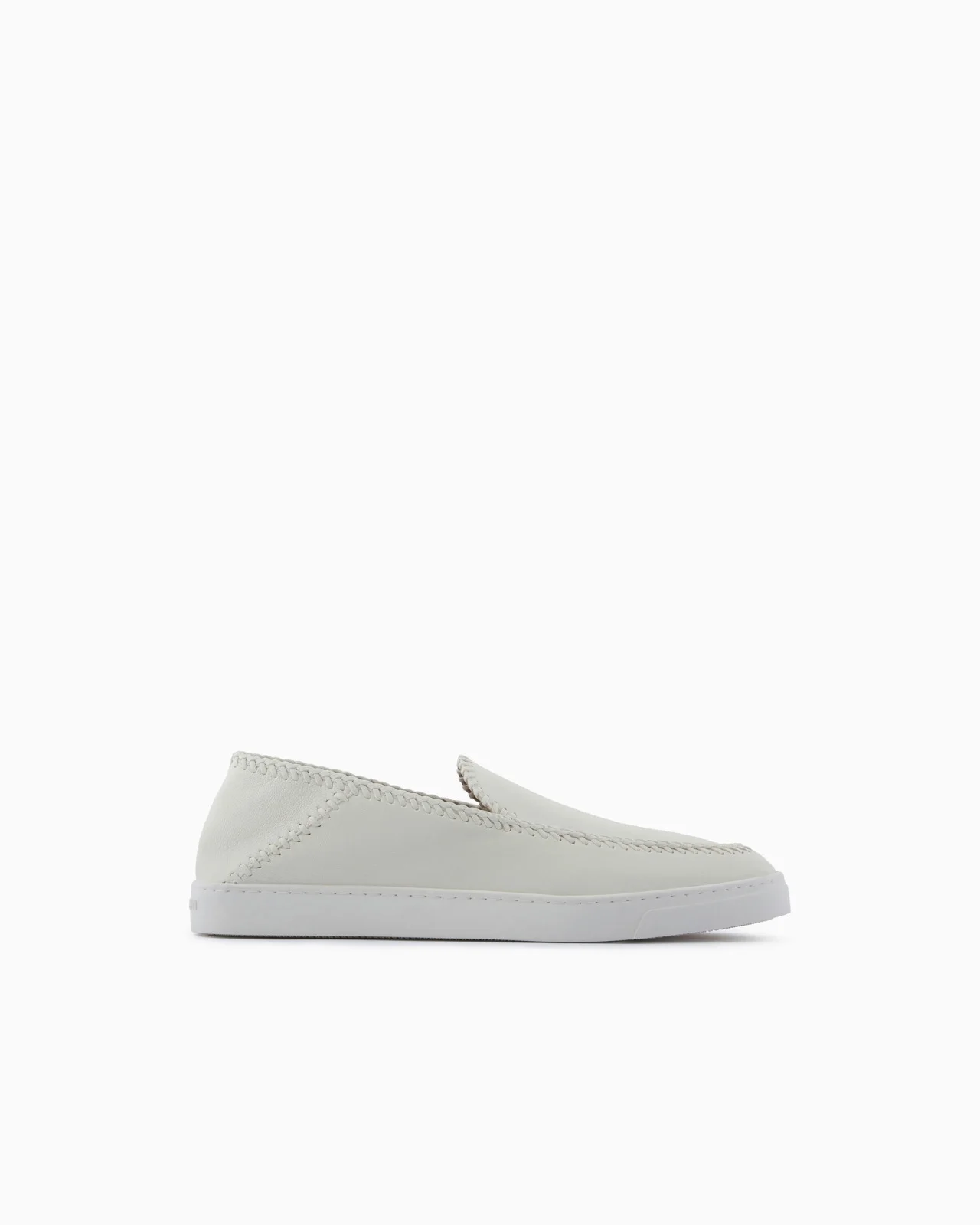 Made from extremely supple nappa leather, this lightweight, comfortable style features exposed stitching across its minimalist design. Casual-yet-sophisticated footwear that is perfect on a wide array of occasions. Product Code: X2X141XF4441K103 Details Composition 100% Lambskin Back logo detail Visible monochromatic topstitching on the upper Flexible white rubber sole Made in Italy