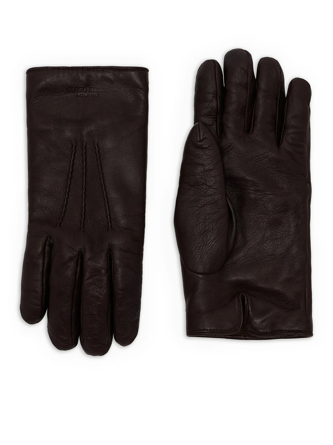 - Crafted from soft lambskin - Pure cashmere lined interior - Heat-stamped Giorgio Armani logo Made in Italy Composition: Lamb Skin 100% lamb leather Color code: 00059 MORO 7441332F203