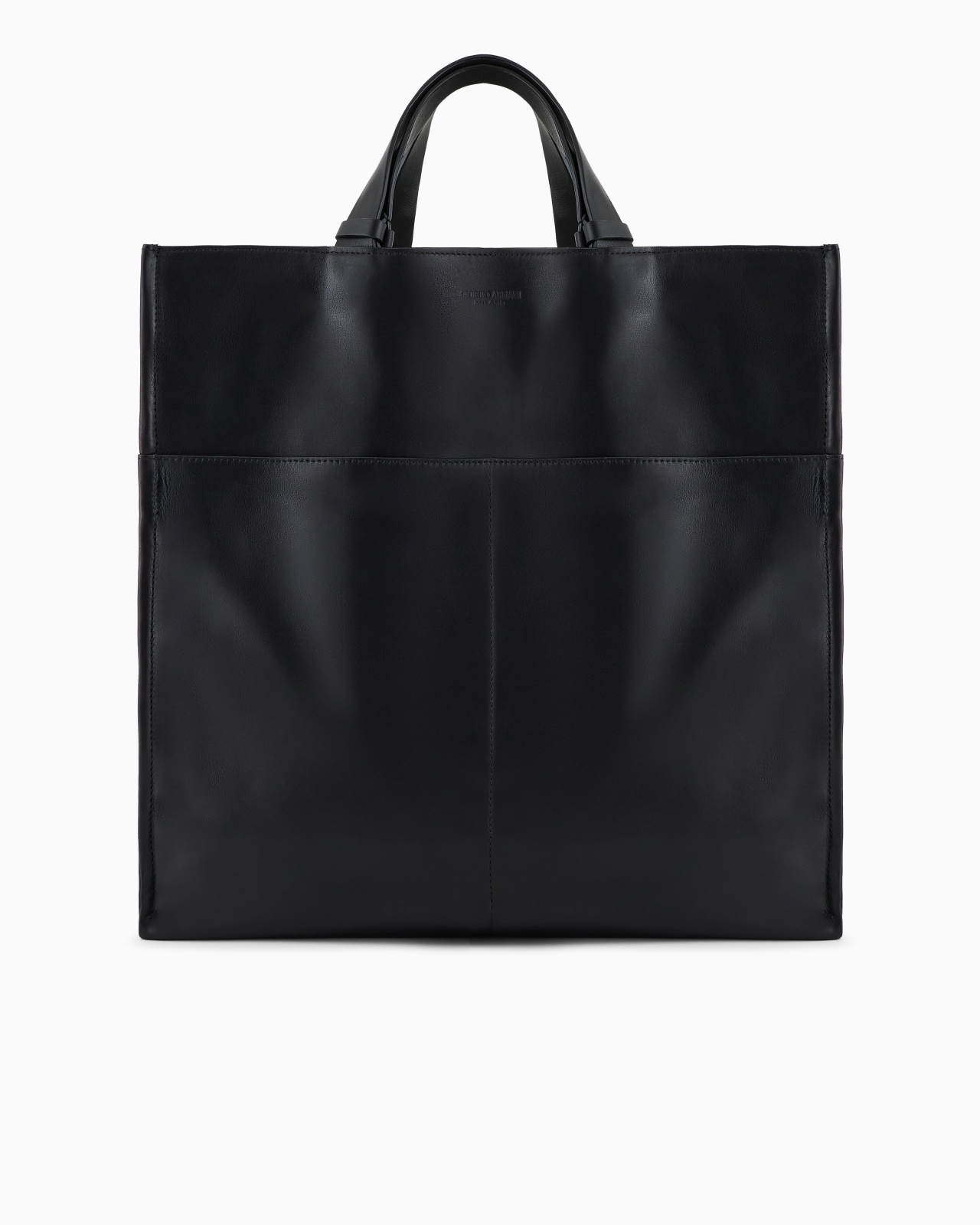 Shopper bag made of calfskin nappa leather that feels extremely supple and silky. A luxurious accessory, embellished with numerous stylistic and functional details, such as adjustable sliding handles that allow it to be worn two ways, its internal layout and an outer double patch pocket. A special selection with a clean and essential construction, customised by the heat-stamped Giorgio Armani logo. Adjustable leather handles for carrying two ways Adjustable, detachable shoulder strap Interior pocket with zip Inner patch pocket Double outer pocket Heat-stamped Giorgio Armani logo Measurements: 40 x 20 x 40 cm Made in Italy This bag is perfect for holding your phone, sunglasses, wallet, card holder and keys Product Code: GM001145AF14751UC001
