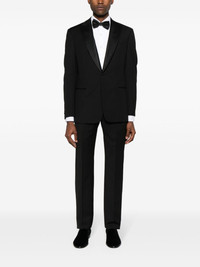 single-breasted virgin wool suit Highlights - Black - Virgin wool - Satin trim - Dart detailing - Peak lapels - Front button fastening - Shoulder pads - Long sleeves - Buttoned cuffs - Chest welt pocket - Two front jetted pockets - Multiple internal jetted pockets - English rear vents - Curved hem - Full lining - Mid-rise - Concealed front button, hook and zip fastening - Two side inset pockets - Two rear button-fastening jetted pockets - Straight leg Made in Italy Composition Outer: Virgin Wool 100%, Polyester 59%, Silk 41% Lining: Viscose 100% SIZE & FIT Model measurements Height 6 ft 2 in(1.88 m) Bust/Chest 36.61 in(93 cm) Hips 35.82 in(91 cm) Waist 27.95 in(71 cm) FittingInformation Tailored for a slim fit, offering a comfortable fit that sits just away from the body The unfinished hems allow for the length to be altered Made from a midweight non-stretch fabric This piece fits true to size – take your usual size