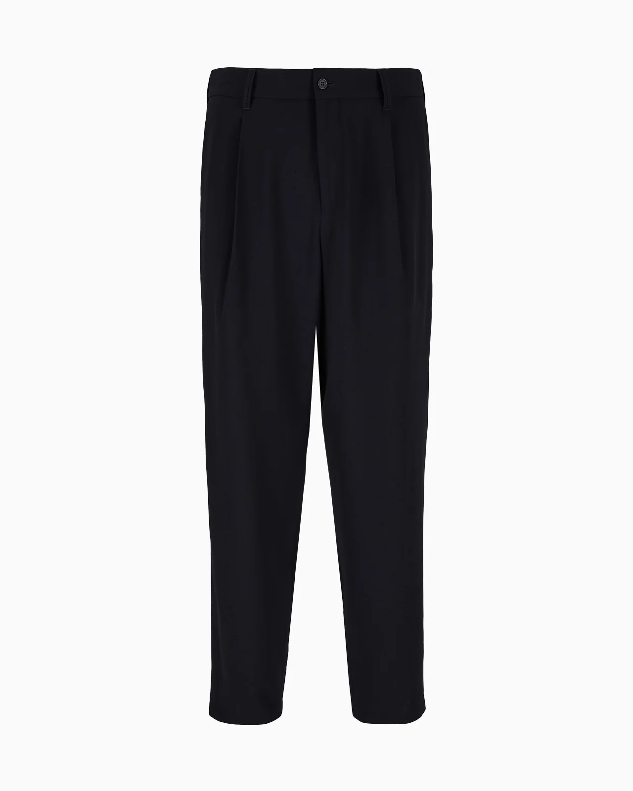 A key piece of the brand’s effortlessly refined style, these single-pleat trousers are made of virgin-wool and are the ideal complement for a wide array of looks when paired with the collection’s jumpers and jackets. They are defined by a comfortable fit, two side pockets, a concealed zip closure and a back welt pocket. Product Code: GM000012TE100741UB109 Details Composition 100% Virgin Wool Single pleat Waistband with belt loops Button and zip closure Two side welt pockets Back welt pocket Cuff width: 18 cm Made in Italy Fitting The model is 188 cm tall and is wearing size 48/M