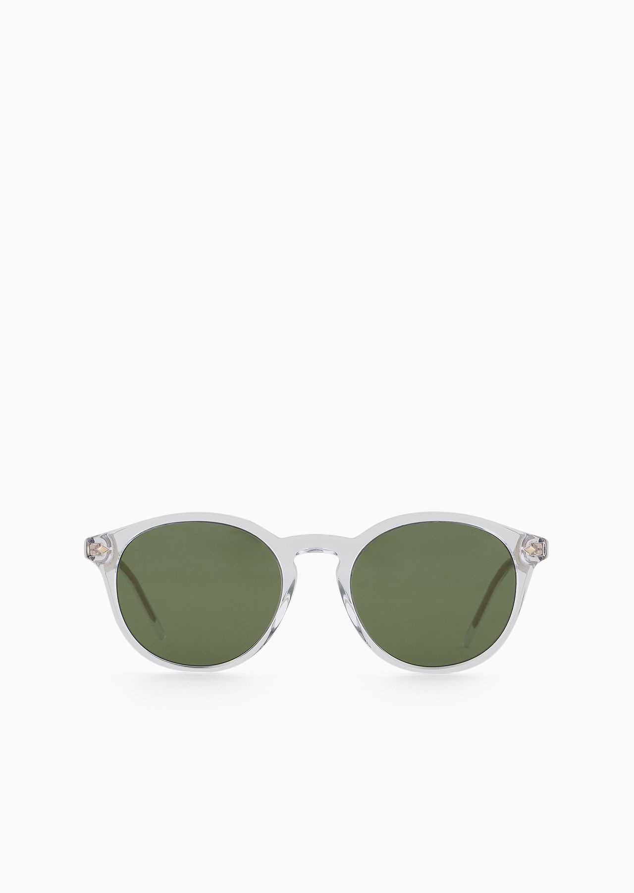 Men’s sunglasses made of bio-acetate, featuring the Panto shape. The linear, clean volumes of the style are enhanced by the transparent finish of the frame and the temples with a horizontal striped motif engraved with the Giorgio Armani logo. Product Code: AR8211.L607514.L152.L Details Composition 100% Acetate Frame material: Acetate Temple material: Acetate Shape: Panto Lens diameter/bridge width/temple length: 52/145/20 mm Frame colour: Shiny transparent crystal Lens colour: Exclusive crystal green Suitable for prescription lenses: Standard