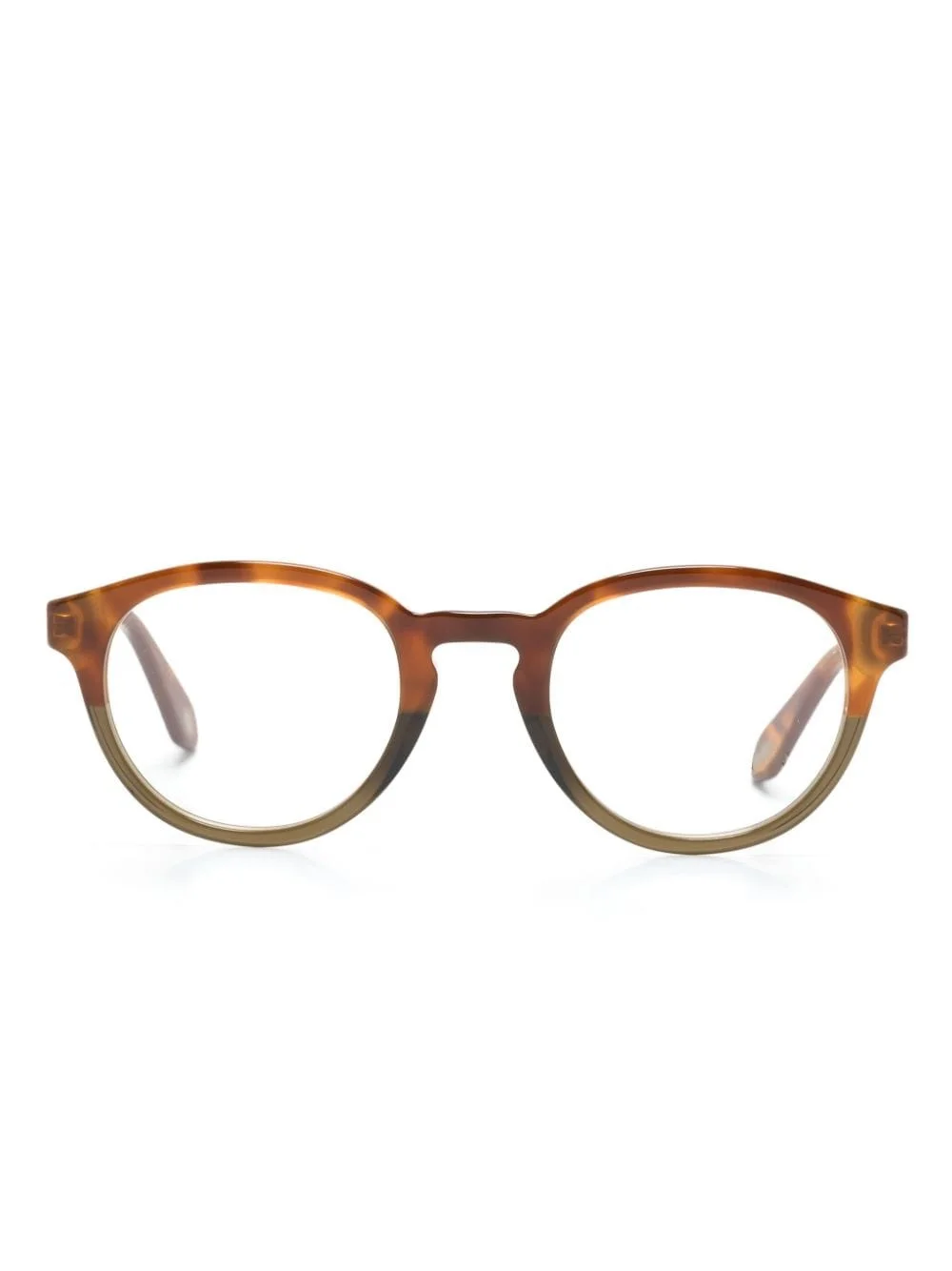 round-frame glasses Highlights - Brown - Acetate - Tortoiseshell effect - Round frame - Clear lenses - Logo-engraved arm - Straight arms with curved tips - These glasses come with a protective case. - All glasses from farfetch are sold as non-prescription frames. Made in Italy Composition Acetate 100%, Acrylic 100% SIZE & FIT Measurement Arm Length 5.7 in(14.5 cm) Bridge Width 0.86 in(2.2 cm) Lens Diameter 1.88 in(4.8 cm) Total Width 5.27 in(13.4 cm)