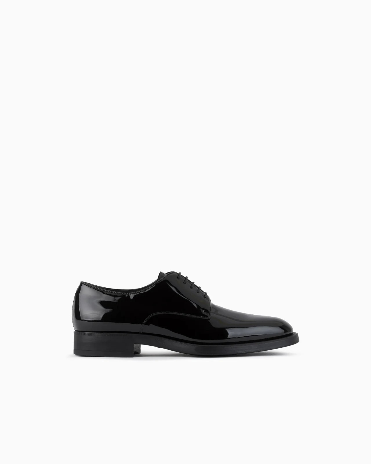 These sophisticated Derby shoes are made from patent leather. Their evergreen, classic style makes them perfect for formal occasions. Rubber soles. Product Code: X2C679XAT24100002 Details Composition 100% Calf-skin leather Leather insoles Rubberised welt Rubber soles Made in Italy