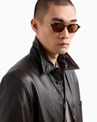 Distinctive and sophisticated shirt jacket made of supple glove-quality lambskin nappa leather, tumbled and sprayed. The regular fit style has a shirt collar and cuffs, a horn button closure and a patch pocket on the chest. The diamond perforations customise the piece, which can be worn as either a jacket over the collection’s jumpers, or as a shirt, thanks to the comfortable cool linen lining. A special offering that will play a starring role in numerous looks. Regular fit Shirt collar Closure with exposed horn buttons One front patch pocket Shirt cuffs with horn button Rounded hemline Linen lining Length: 78 cm Made in Italy Product Code: GM001609AF14912U6032