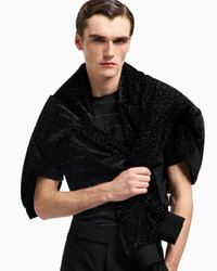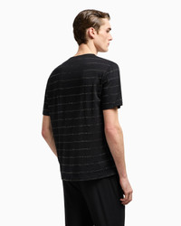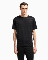 In this special version, the crew neck T-shirt, the epitome of relaxed and casual looks, lends itself to evening looks with a modern twist. Crafted from premium Pima cotton in a regular fit, it is embellished with a horizontal striped motif made from shiny heat-sealed rhinestones.<br>The piece is part of the exclusive collection that celebrates the connection between Giorgio Armani and the world of Hollywood. A colour palette of deep blues combines with a profound and ever-elegant black, to create a sparkling, luxurious selection inspired by the limelight and most exclusive Hollywood parties. Extremely sophisticated pieces with iconic lines are made of velvets, silks and satins enlivened by crystal and rhinestone embellishments and refined workmanship. Looks for him and her, designed for evenings and special occasions. Crew neck Short sleeves Horizontal striped pattern created with matching heat-adhesive rhinestones Made in Italy Product Code: GM001735TE10567UC001