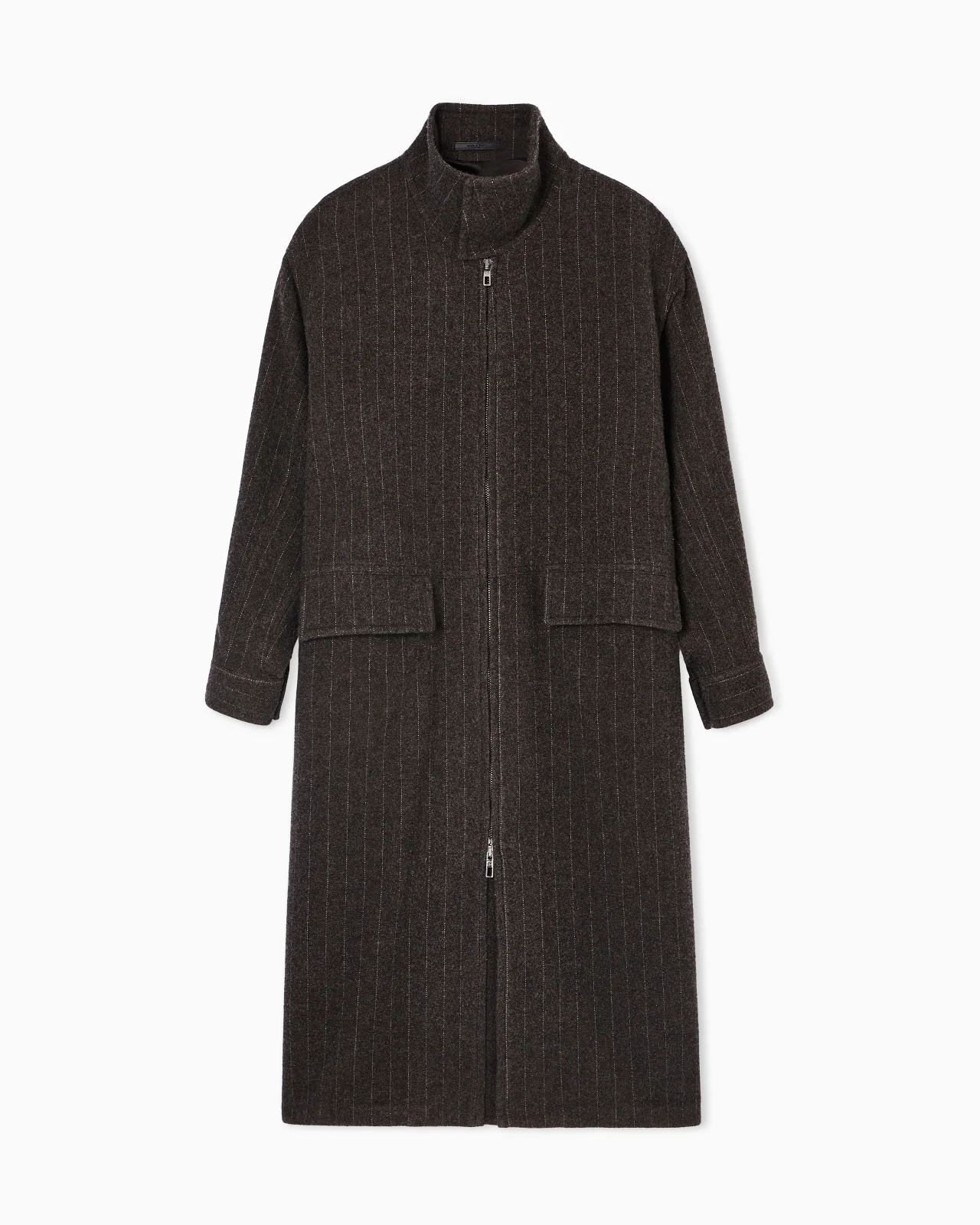 PINSTRIPED, ZIP-UP COAT IN CASHMERE CLOTH AND WOOL