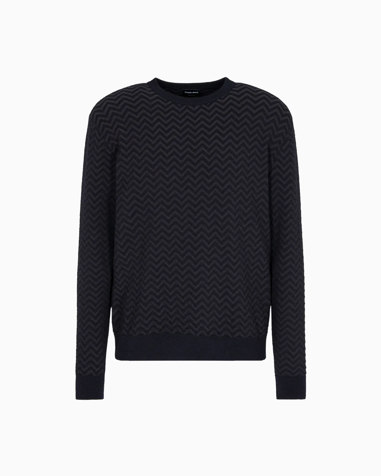 PLATED CHEVRON VIRGIN WOOL, CREW-NECK JUMPER