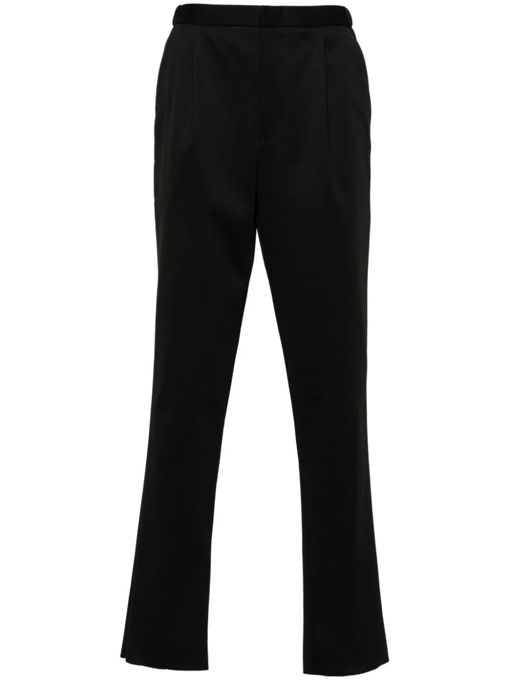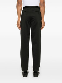 pleat-detail trousers Highlights - Black - Stretch-design - Front pleat detailing - Concealed front button, hook and zip fastening - Elasticated waistband - Two side slash pockets - Two rear button-fastening jetted pockets - Full-length - Tapered leg Imported Composition Wool 30%, Elastane 3% SIZE & FIT Model measurements Height 6 ft 2 in(1.87 m) Bust/Chest 38.18 in(97 cm) Hips 36.61 in(93 cm) Waist 29.13 in(74 cm) FittingInformation Designed for a tapered leg, offering a loose unrestricted fit over the leg with a closer fit towards the ankle The elasticated waist allows for a comfortable fit Made from a midweight stretch fabric, this piece offers elasticity and flexibility when worn This piece fits true to size – take your usual size