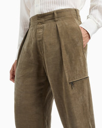 Single-pleat trousers made from Lyocell and linen, available in the collection's colour palette. With a waistband with belt loops, button and zip closure and side pockets, the style is distinguished by an extremely smooth, silky feel that ensures a comfortable fit and side zip pocket detail that adds a rugged touch to the item. A piece with a modern, relaxed cut, the perfect match for a multitude of looks. Single-pleat trousers Waistband with belt loops Zip-and-hook closure Two side pockets Two zipped side pockets Two back welt pockets Cuff width: 21 cm Made in Italy Product Code: GM001394TE14273U6254