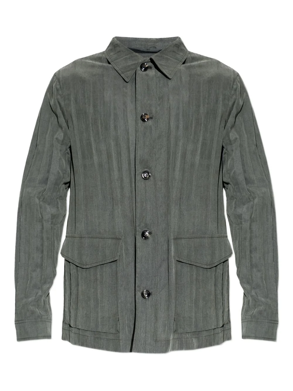 buttoned pocket jacket Highlights - Grey - Front button fastening - Classic collar - Buttoned cuffs - Front flap pockets - Pleated back Made in Italy Composition Lyocell 65%, Polyamide 35% Washing instructions Read Manufacturer Guidelines