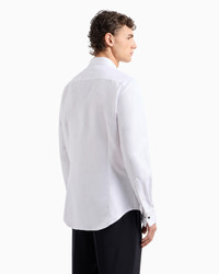 Slim-fit shirt made from of cotton. Its unique, large, front faced placket evokes a tuxedo shirt plastron and is embellished with a pleated motif that creates a three-dimensional effect. A style that perfectly completes elegant evening looks. The garment is part of an exclusive capsule collection dedicated to special occasions, reflecting the iconic vision of elegance through the brand’s style codes. A sophisticated, timeless and elegant style in silk with geometric jacquard motifs and dense, luminous velvets that create an alluring play of light. Product Code: 4SGCC0ATT05261U0BN Details Composition 100% Cotton Slim fit Pleated bib Wing-tip tuxedo collar with bow tie cover Back yoke Back darts Fastened with mother-of-pearl buttons French seams Double cuffs Made in Italy
